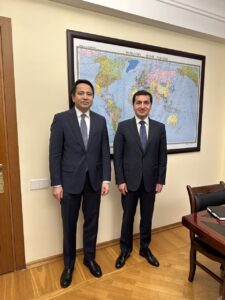 Qazaxıstanın Azərbaycandakı Səfiri Alim Bayel Azərbaycan Respublikası Prezidentinin Xarici Siyasət üzrə Köməkçisi Hikmət Hacıyevlə görüş keçirib.